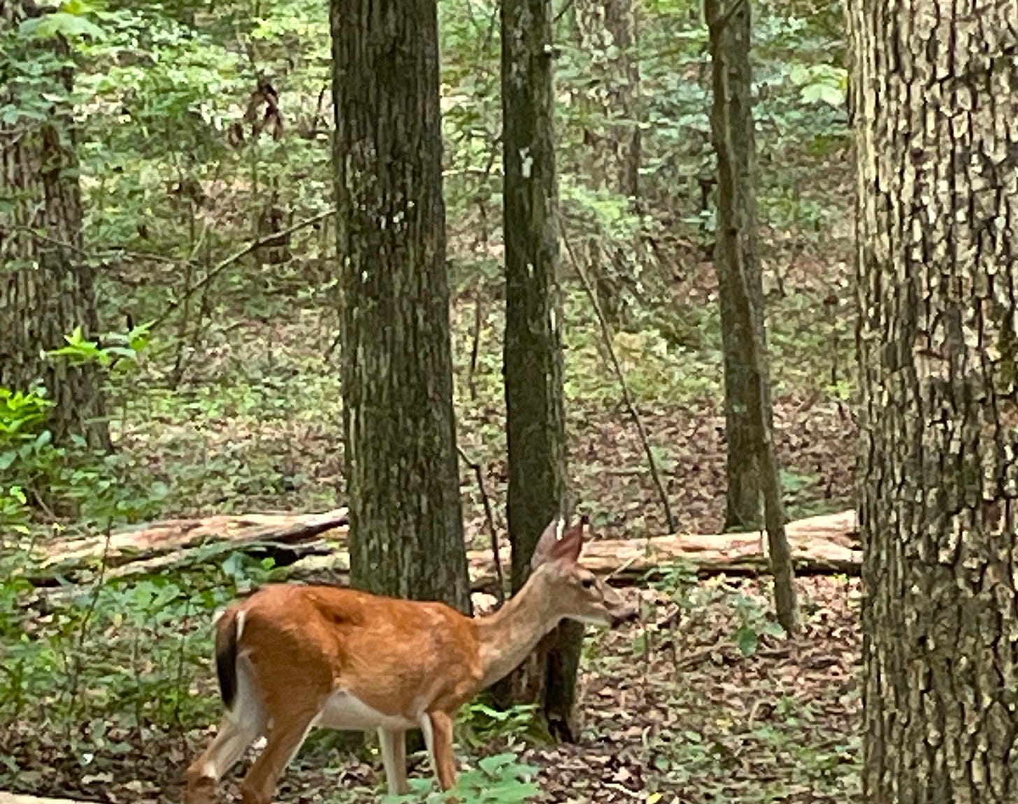 The deer show wild and free. So close but no fear. Just each about their business. I read a book, and a doe wanders up close finding leaves to munch. A reminder of living in the moment while not carrying a load of self imposed anxiety.