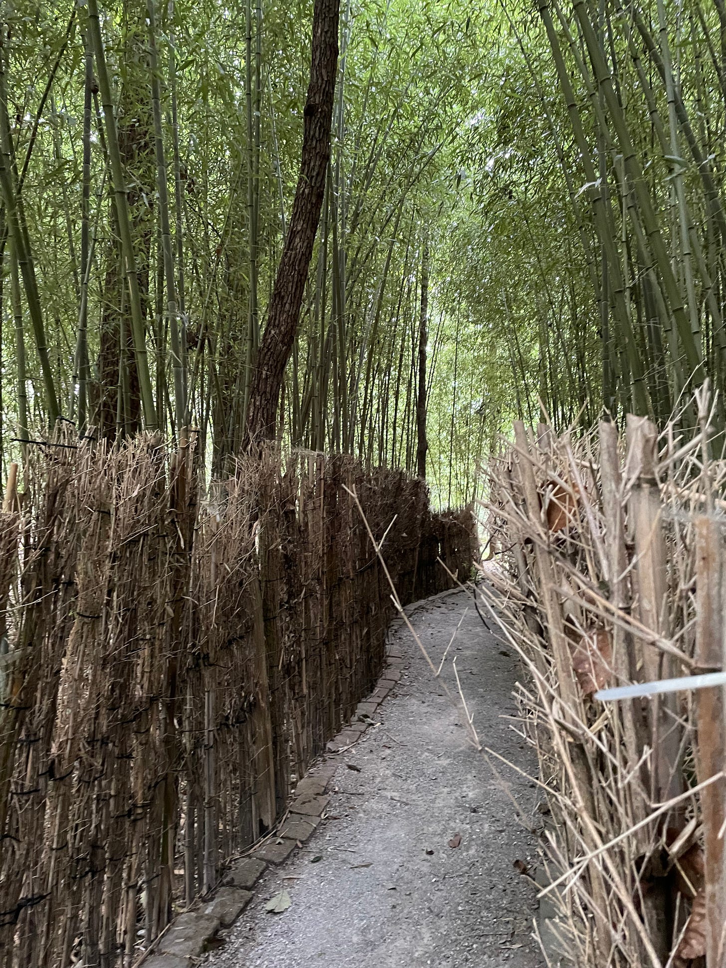 The park features a Japanese garden with easy walking trails lined with bamboo. The trails are made from fine gravel and meander through plants that originated from Japan. There is a gentleness to the gardens that features a natural hut and a bright red bridge over a creek. After an easy walk through this area, my nervous system downshifts. My vision no longer swirls from the digital world. My senses come alive with the surroundings.