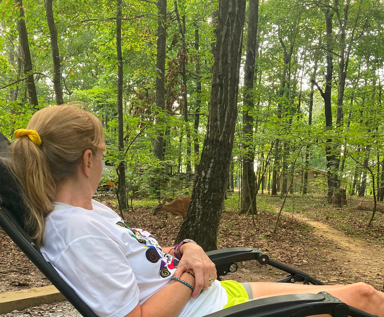 I plop down at the camp site after a quick setup. My vision swirls. The computer, Zoom calls, social platforms, reading on Kindle. Screen time swirls and draws me in continuously. How often I slow and not consume is rare. Even my yoga practice comes from a video most days. Five days with little cell service forces me to unplug. Five days to reset with runs, hikes, writing and watching the deer.